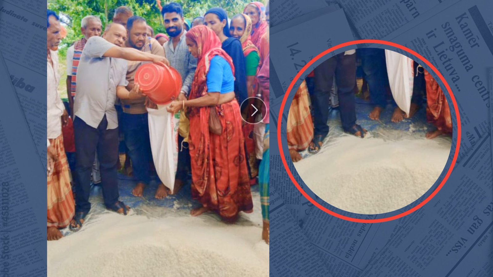 ছবি | জুতা নিয়ে চালের স্তুপের দাড়িয়ে চাল বিতরণ করছেন ইউপি চেয়ারম্যান।