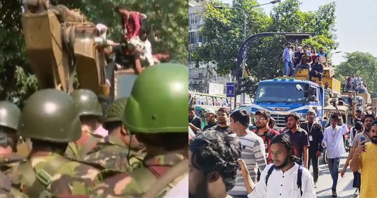 আজ সোমবার (১৭ নভেম্বর) দুপুরে ঢাকা কলেজ এলাকা থেকে মিছিলসহকারে রওনা হয়ে দুপুর ১২টার দিকে দুটি বুলডোজার নিয়ে সেখানে পৌঁছান তারা।