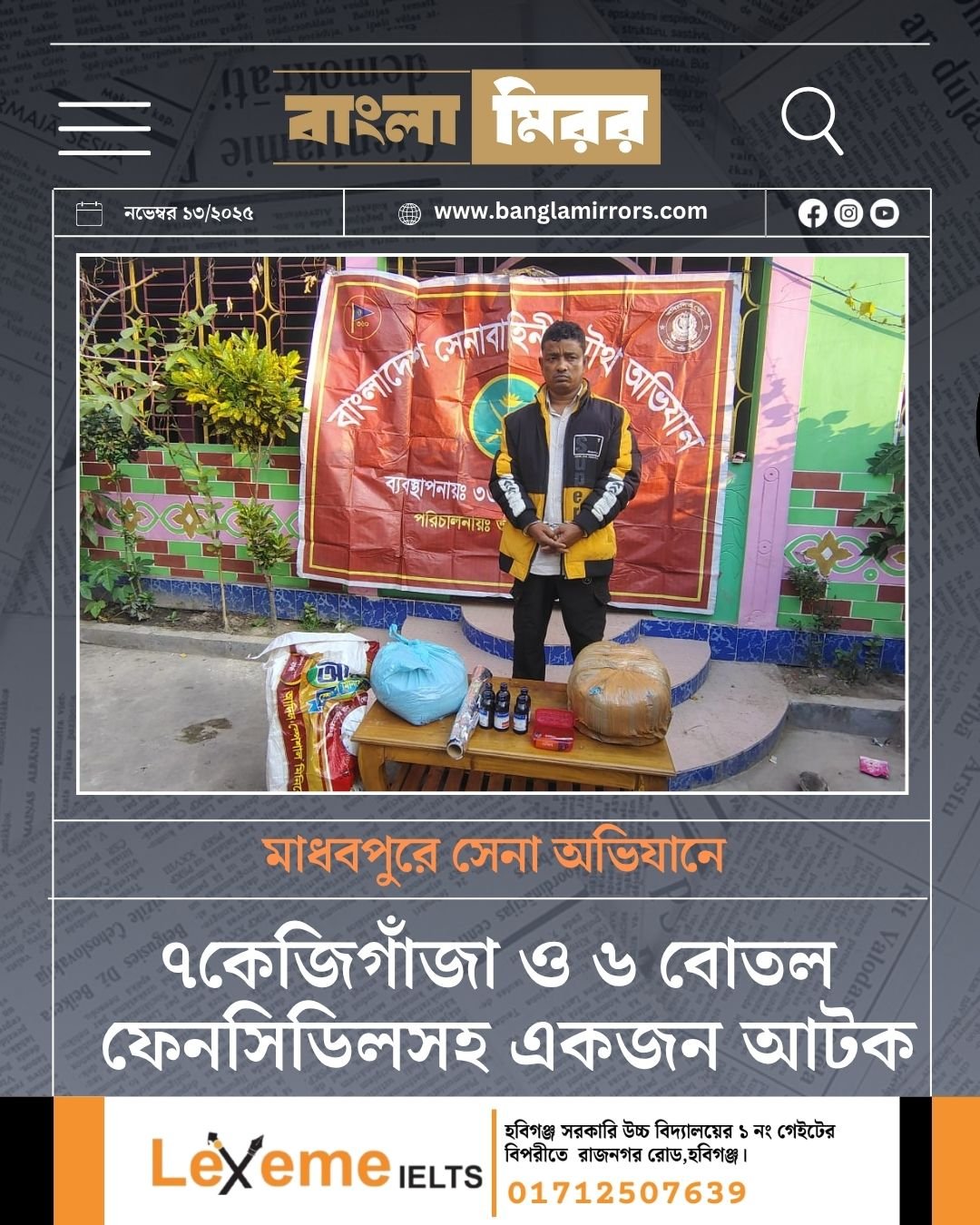 সেনা সদস্যরা জানান, মাদক বিরোধী অভিযান দেশের চলমান শুদ্ধি অভিযানের অংশ হিসেবে পরিচালিত হয়েছে। অভিযানে মাধবপুর আর্মি ক্যাম্পের একটি টিম অংশ নেয়।
