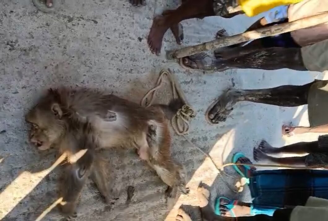 লাখাইয়ে হাওরে আসা বানরকে পিটিয়ে হত্যা