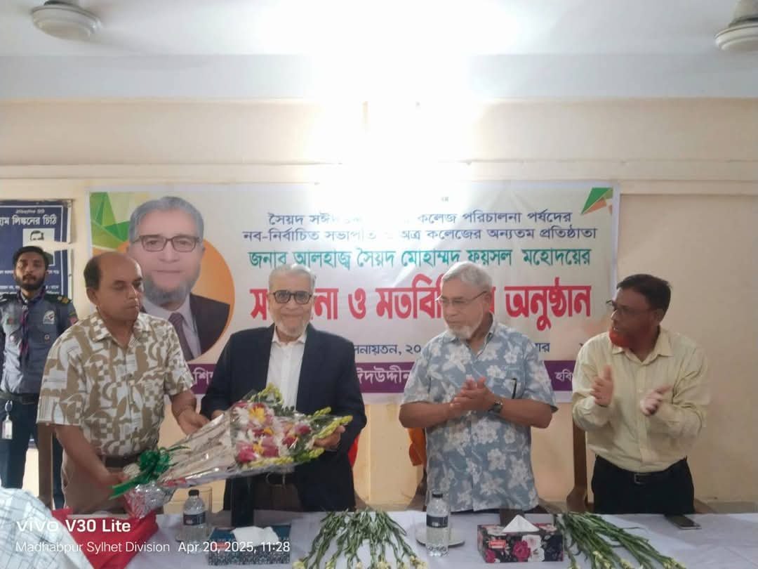 নবনির্বাচিত সভাপতি সৈয়দ মোঃ ফয়সল বলেন, বৃহত্তর সিলেটের প্রবেশদ্বার মাধবপুরের সৈয়দ সঈদ উদ্দিন ডিগ্রী কলেজ ১৯৮৬ সালে প্রতিষ্টা করা হয়।মাধবপুর বাসির ছেলেমেয়েদের উচ্চ শিক্ষার সুযোগ অবারিত করার জন্য। অনেক বাধাবিপত্তি মোকাবেলা করতে হয়েছে।কিন্তু এলাকার শিক্ষার কথা চিন্তা করে কলেজ প্রতিষ্টাতার পর থেকে আমরা সব ধরনের সহযোগীতা করেছি।বিগত সরকার আমাদেরকে রাজনৈতিকভাবে দুরে রেখেছিল। তবে মাধবপুর বাসি আমাদের তাদের মনের মণিকোঠায় রেখেছে।তাই শত নির্যাতন অত্যাচার সহ্য করে আমরা মানুষের কল্যাণ করেছি।যারা আমাদের বিরুদ্ধ ষড়যন্ত্র করেছে তারা আজ হারিয়ে গেছে। সাবেক উপজেলা চেয়ারম্যান সৈয়দ মোঃ শাহজাহান বলেন, এই কলেজের শিক্ষার গুনগত মান উন্নয়নে শিক্ষকদের বিশেষ ভূমিকা রাখতে হবে।