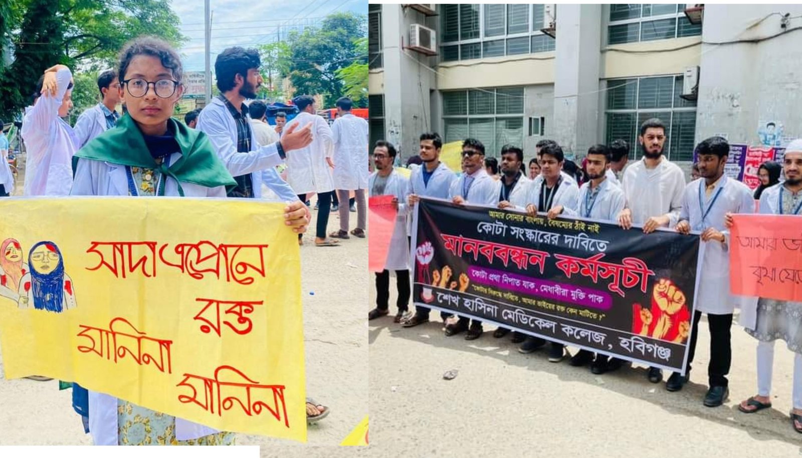 সরকারি চাকরিতে কোটা সংস্কারের দাবি, আন্দোলনকারীদের ওপর হামলা ও হত্যার প্রতিবাদে হবিগঞ্জ শেখ হাসিনা মেডিকেল কলেজের শিক্ষার্থীরা বিক্ষোভ ও মানববন্ধন করেছেন। আজ বুধবার (১৭ জুলাই) বেলা...